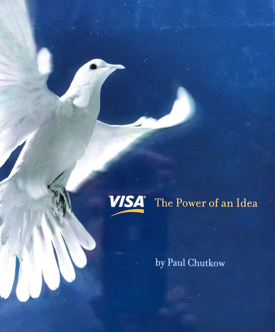 This is the inside story of the creation of Visa cards and digital money, and in many ways it is also the story of a revolution in global banking and commerce. Visa sent the author -- some guy named Chutkow -- to 20 different countries to see how that little strip of plastic transformed the economies of countries as different as China, Italy, Poland and the United States. To complete the book, I brought together a team of photographers, book designers and printers. Visa was delighted by the result, and in the process a landmark business book was born, and so was my little baby, Val de Grace Books.